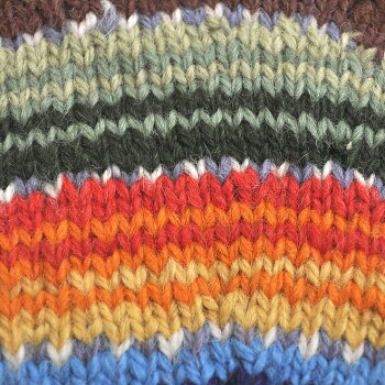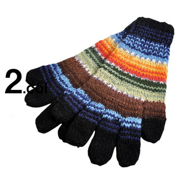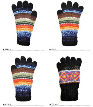 色使い豊かなカラーリングに、ざっくりと編み立てられたニット手袋です。